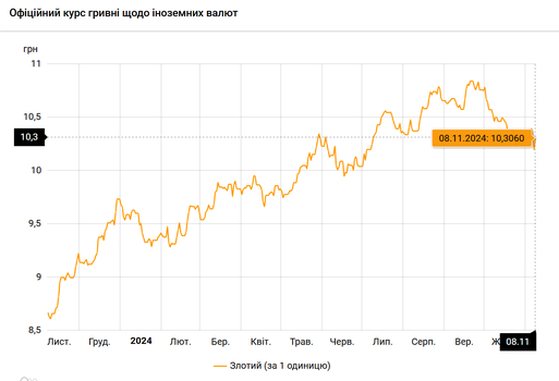 - 100 польских злотых – 1030 грн. (10,30 за злотый, +11 коп.)