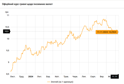 - 100 польских злотых – 1029 грн. (10,29 за злотый, -1 коп.)