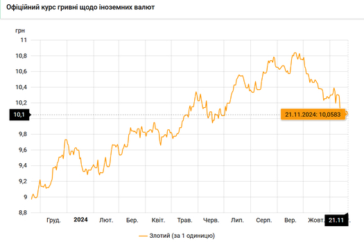 - 100 польских злотых – 1005 грн. (10,05 за злотый, -4 коп.)