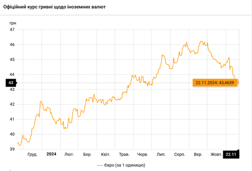 Национальный банк Украины обновил курсы валют на 22 ноября 2024 года.