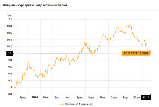 - 100 польских злотых – 1000 грн. (10,00 за злотый, -5 коп.)