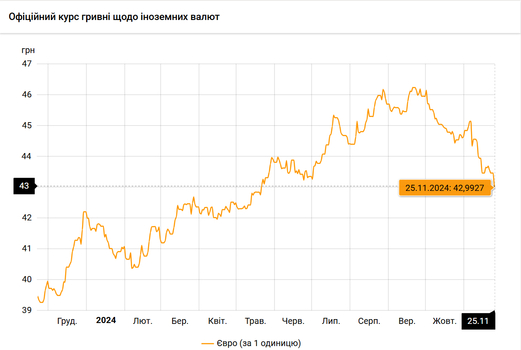 Национальный банк Украины обновил курсы валют на 25 ноября 2024 года.