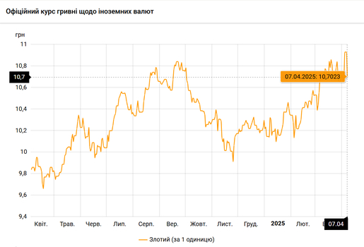 - 100 польских злотых – 1070 грн (10,70 за злотый, -22 коп.)