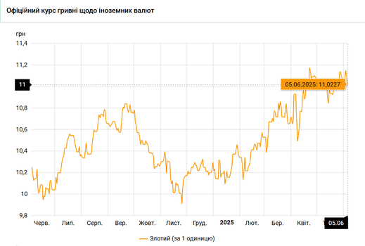 - 100 польских злотых – 1102 грн (11,02 за злотый, -7 коп.)