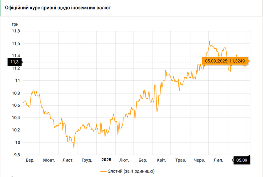 - 100 польских злотых – 1132 грн (11,32 за злотый, -1 коп.)