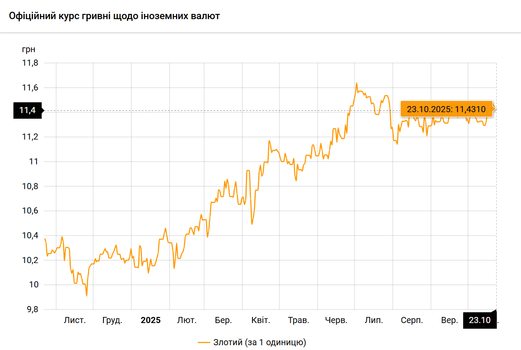 Национальный банк Украины обновил курсы валют на 23 октября 2025 года.