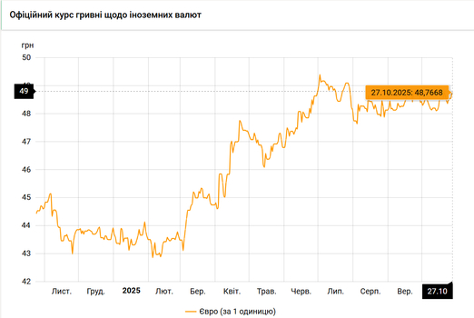 Национальный банк Украины обновил курсы валют на 27 октября 2025 года.
