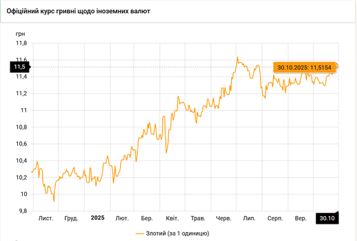 - 100 польских злотых – 1151 грн (11,51 за злотый, -4 коп.)
