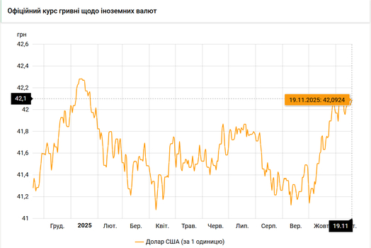 Национальный банк Украины обновил курсы валют на 19 ноября 2025 года.