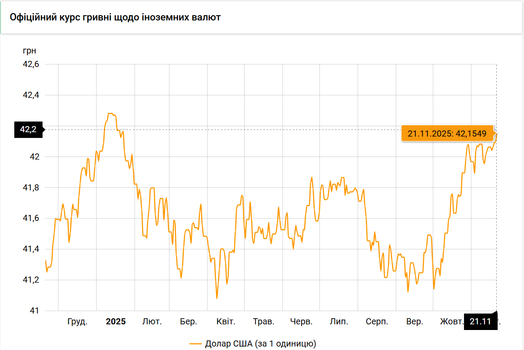 Национальный банк Украины обновил курсы валют на 21 ноября 2025 года.