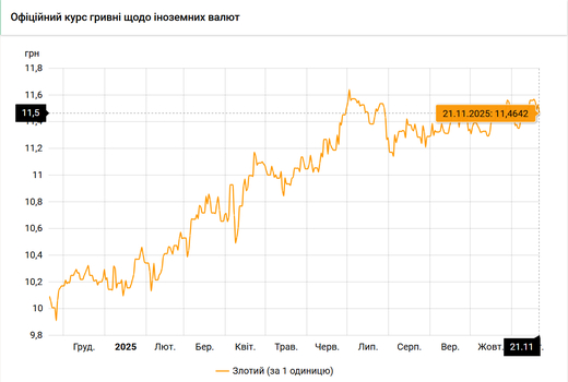 - 100 польских злотых – 1146 грн (11,46 за злотый, -7 коп.)