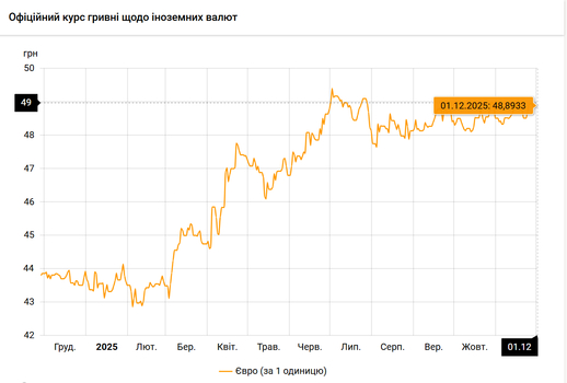 Национальный банк Украины обновил курсы валют на 1 декабря 2025 года.