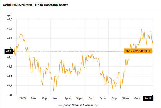 Национальный банк Украины обновил курсы валют на 26 декабря 2025 года.