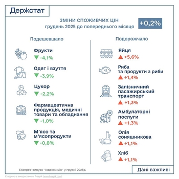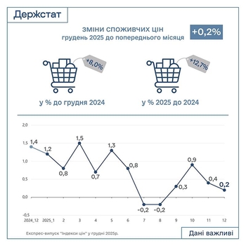 Напомним, в ноябре 2025 года потребительские цены в Украине выросли на 0,4% по сравнению с октябрем, в годовом исчислении темпы инфляции замедлились до 9,3%.