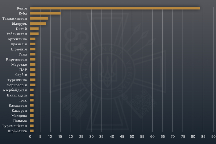 По его словам, основными источниками пополнения личного состава остаются страны постсоветского пространства и государства Глобального Юга. Среди них Беларусь, Таджикистан, Узбекистан, Куба, Кения, Китай и другие.