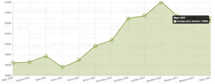 Жилье класса "премиум" четвертый месяц стабильно удерживает цену. В ноябре 2020 премиум квартиры в столице резко подешевели, но после начали дорожать. В марте 2021 года стоимость 1-го кв.м составила 76 013 гривен, что на 4% меньше, чем в феврале.