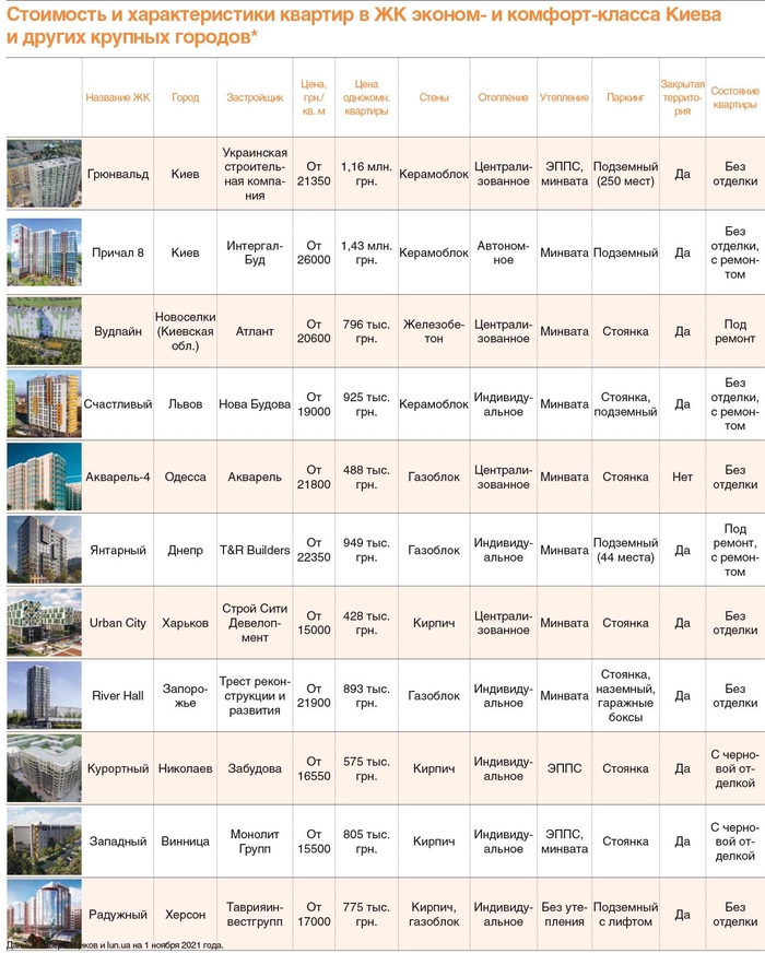 В областных центрах поменьше (Винница, Николаев, Запорожье, Херсон, Тернополь и т. д.) новая недвижимость, конечно же, дешевле, чем в крупных мегаполисах. Если задаться целью, там еще можно найти жилье по цене от 12–13 тыс. грн. за квадратный метр. Тем не менее, рост цен не обошел стороной и глубинку. И в среднем стоимость квартир на периферии уже сопоставима с ценами в миллионниках, достигая 18–20 тыс. грн./кв. м.