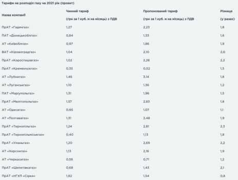 В целом, повысить тарифы за транспортировку и распределение газа разрешили 43 газораспределительным компаниям во всех областях Украины, что может привести к росту данного тарифа в 1,7 раза с января 2021 года. Отмечается, что решение касается исключительно платы за доставку природного газа.