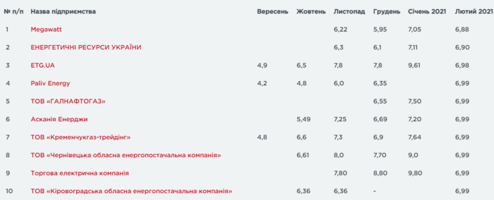 Компания Megawatt предлагает цену в 6,88 грн, "Энергетические ресурсы Украины" - 6,90, а ETG.UA - 6,98 грн за кубометр. Т.е. по сути цена почти не отличается от верхней планки, установленной государством. Стоит помнить, что цены указаны с НДС, но без учета стоимости распределения, которая оплачивается потребителями отдельно и напрямую облгазам.