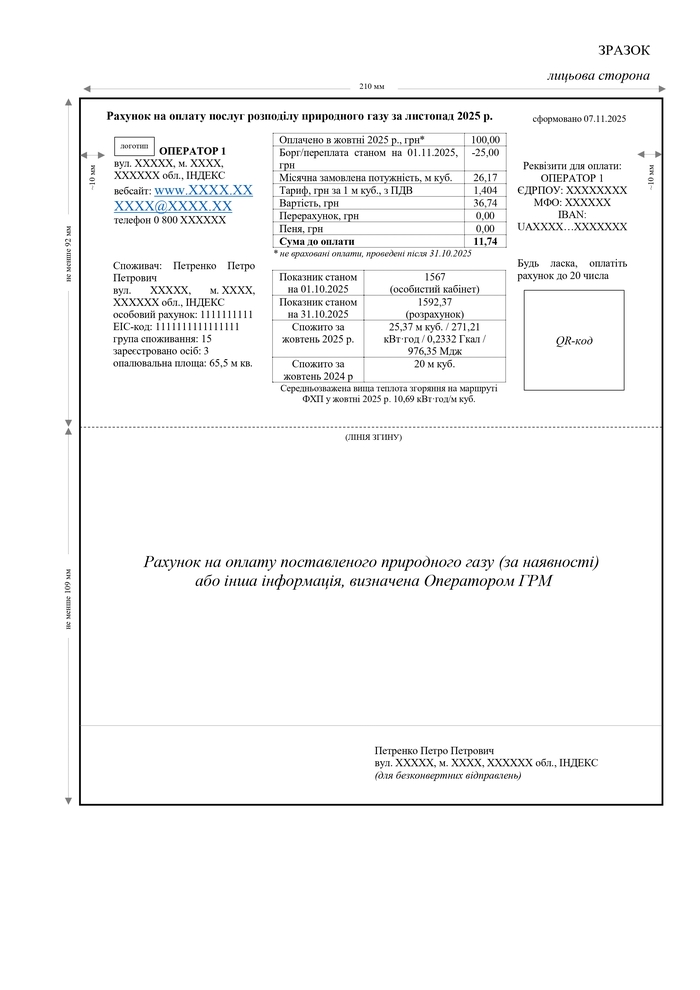 НКРЭКУ утвердила новый формат платежных документов за распределение природного газа для бытовых потребителей — изменения вступят в силу с 1 октября 2026 года.