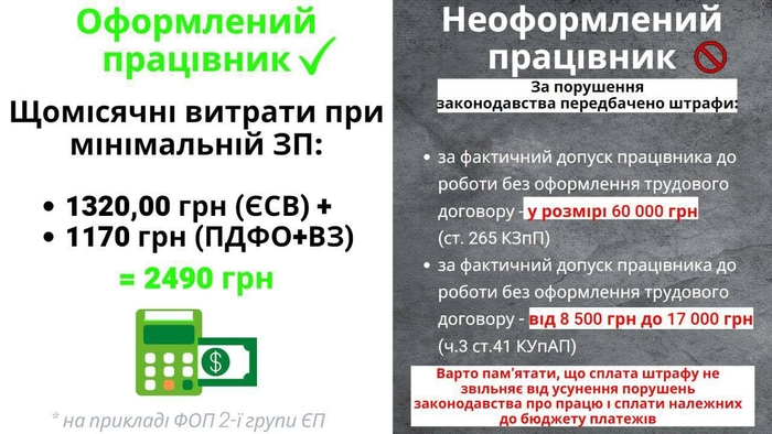 Он также напомнил, что работодателей, которые нарушают некоторые нормы закона о труде, ждет штраф от 8,5 тыс. грн до 60 тыс грн. Сумма меняется в этих пределах в зависимости от обстоятельств нарушения закона.