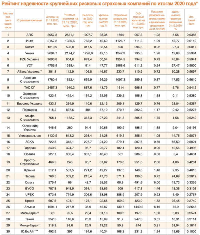 *** Компанія отримала найнижчий бал через призупинені ліцензії (рішення НБУ від 19 квітня 2021 року).