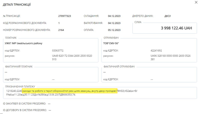 Зокрема, про це свідчить призначення платежу транзакції в казначейській системі: