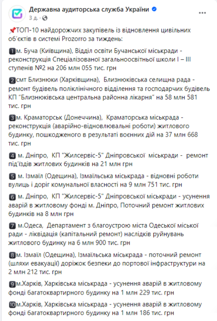 Цього разу до списку найбільш дорогих закупівель потрапили дві позиції, що замовила Ізмаїльська міська рада, повідомляють Українські новини.
