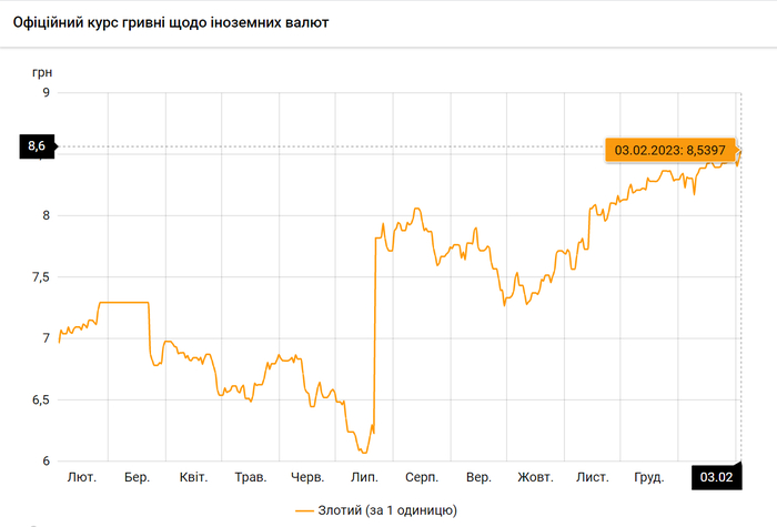 - 100 польських злотих – 853 грн. (8,53 за злотий, +7 коп.)