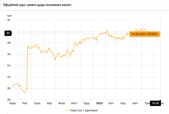 На міжбанківському ринку на 16.06.2023 встановлено наступний курс:
