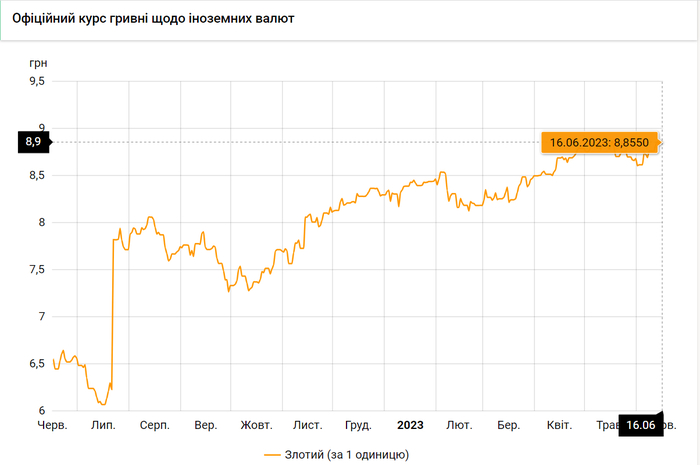 - 100 польських злотих – 885 грн. (8,85 за злотий, -1 коп.)