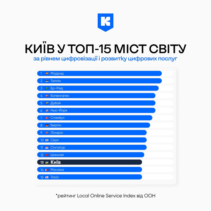 Зазначається, що рейтинг Local Online Services Index від ООН проводиться кожні 2 роки й показує, як міста здійснюють цифрову трансформацію.