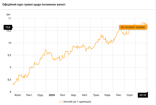- 100 польських злотих – 1064 грн. (10,64 за злотий, -2 коп.)
