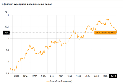 - 100 польських злотих – 1025 грн. (10,25 за злотий, +2 коп.)