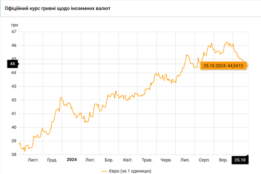 Курс валют на 25.10.2024: Долар падає