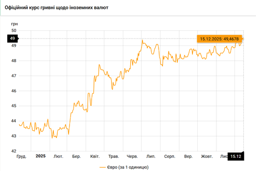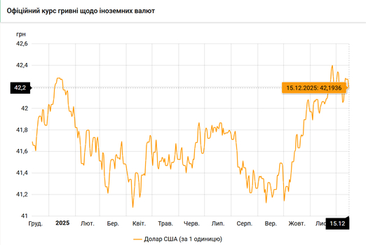 Національний банк України оновив курси валют на 15 грудня 2025 року.