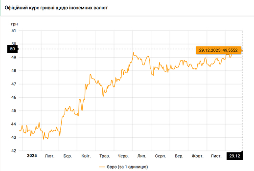 Національний банк України оновив курси валют на 29 грудня 2025 року.