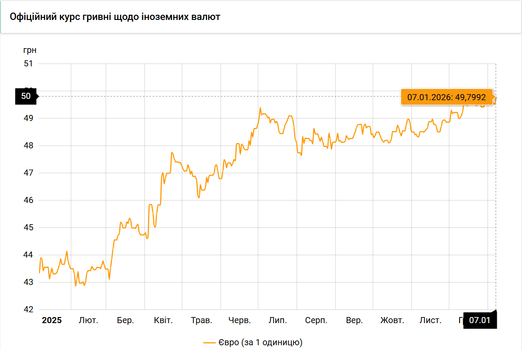 Курс євро в касах банків 7 січня 2026 року